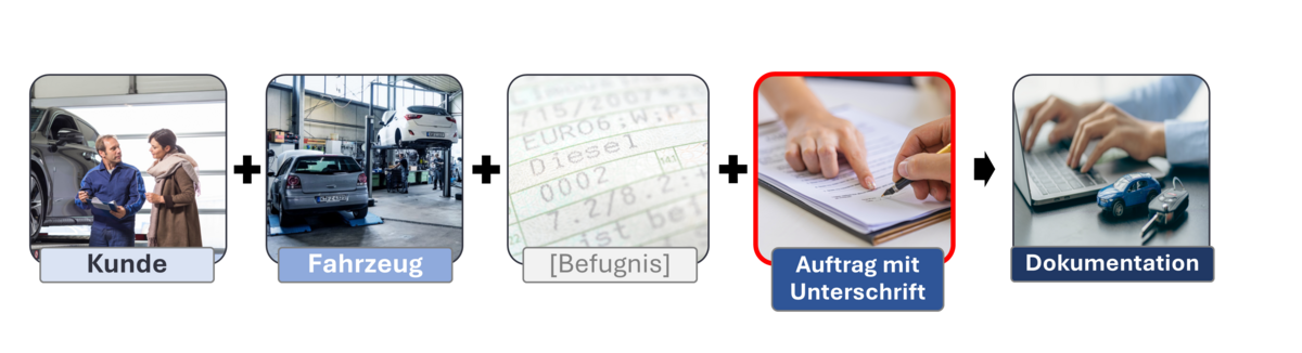 Ist der Kunde, der das Fahrzeug gebracht hat, nicht gleichzeitig der Halter, muss eine entsprechende Befugnis vom Kunden vorgelegt werden.